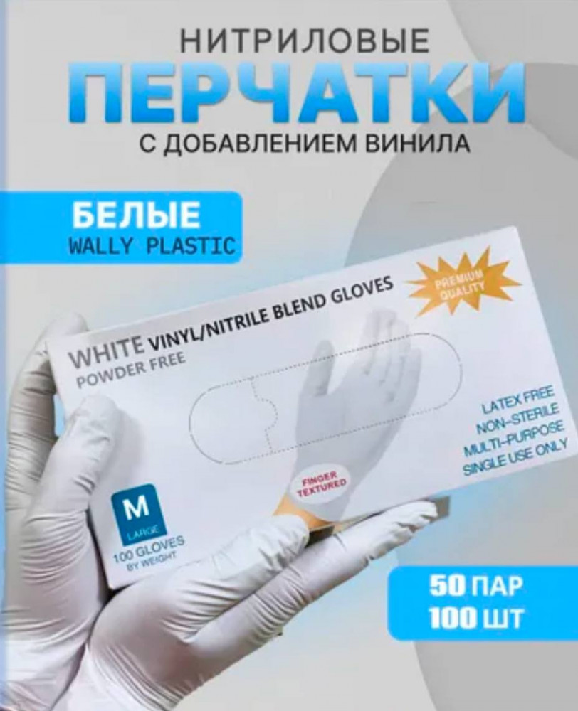 Перчатки Vinil / Nitrile Blend WallyPlastic Белые S 50пар/уп