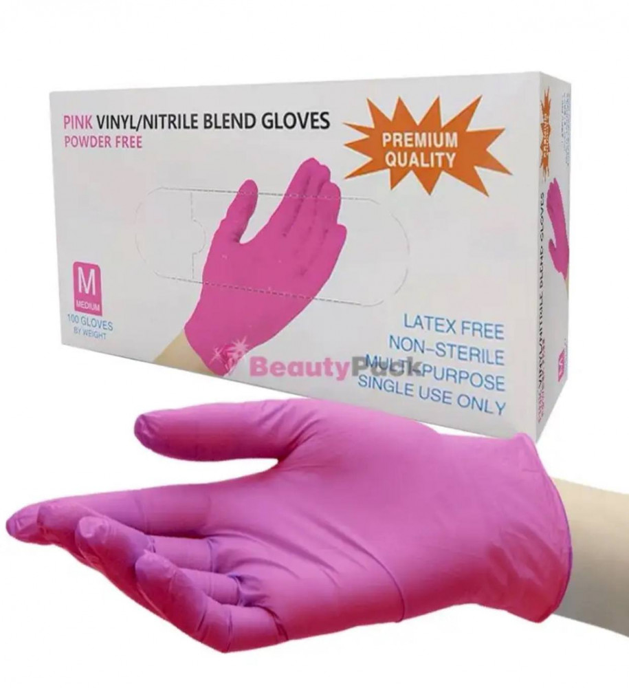 Перчатки Vinil / Nitrile Blend WallyPlastic Розовые М 50пар/уп